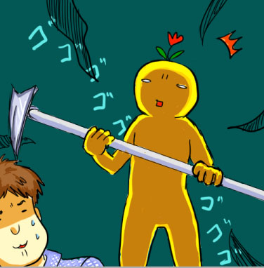 クワを持って後ろをついて行ってるだけなのに