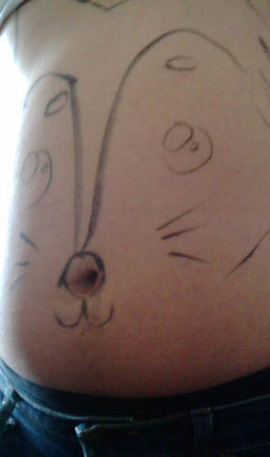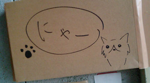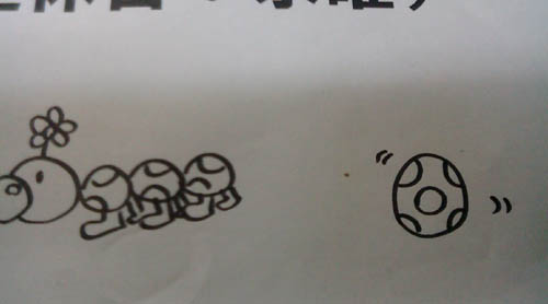 お休みと書いた紙にらくがき。