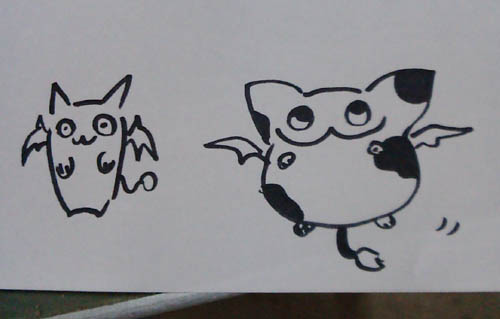 右:見て描いたモーモン