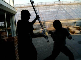 お客さんが少なくなったとたん遊ぶ妹と彼氏さんの二人。