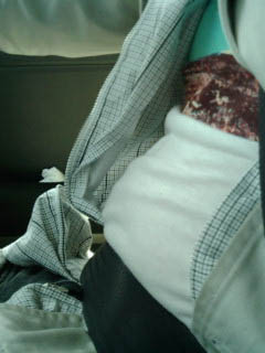 香川のおうどんをたらふく食べた相方さんの腹(=゚ω゚=)