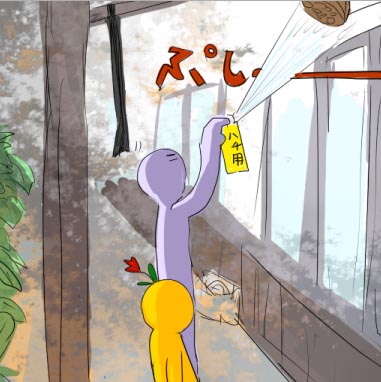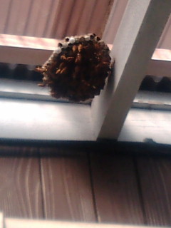 おばあちゃんの部屋の前に蜂の巣が出来ていたので
